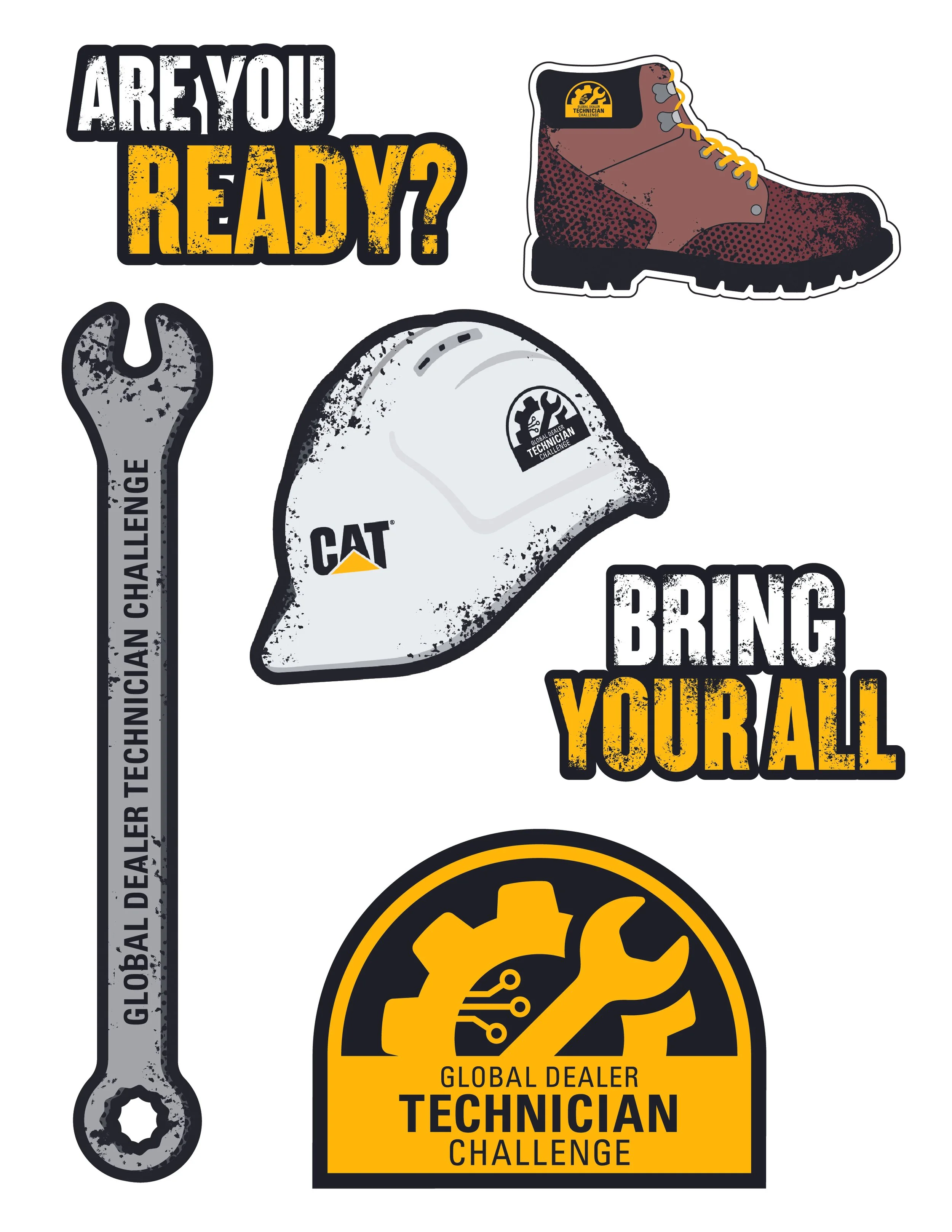 Illustrated sticker sheet for competition relating to technician recruitment.