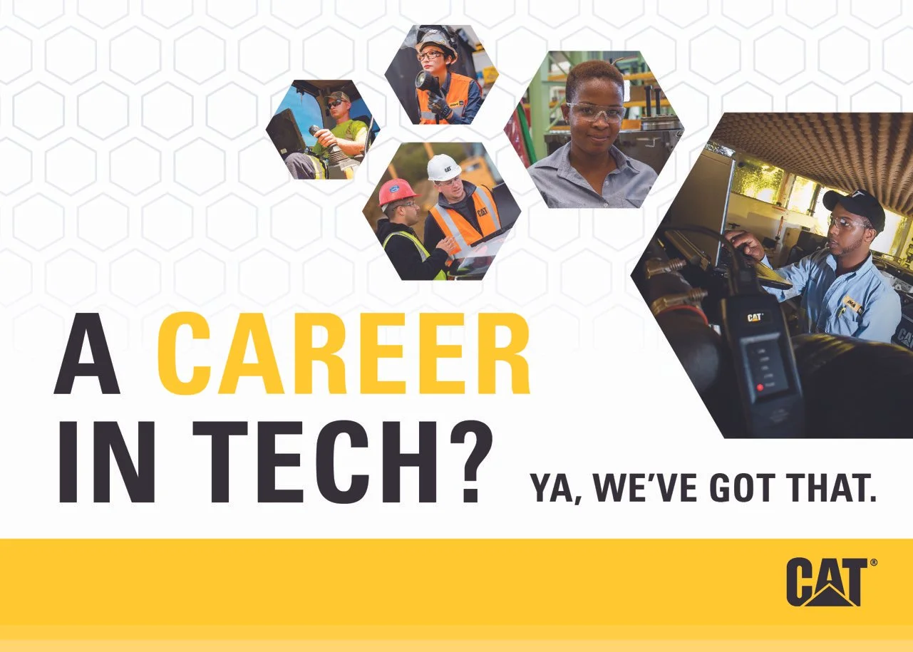 Caterpillar developed a competition to find the best technician in the world, called the Global Dealer Technician Competition. For this world-wide competition, I was tasked with creating both digital and physically printed assets to support this competition. The assets I created for Caterpillar range from outdoor wall banners, posters, shirts, window clings, email banners, PowerPoint templates, Microsoft Teams backgrounds, and more.
